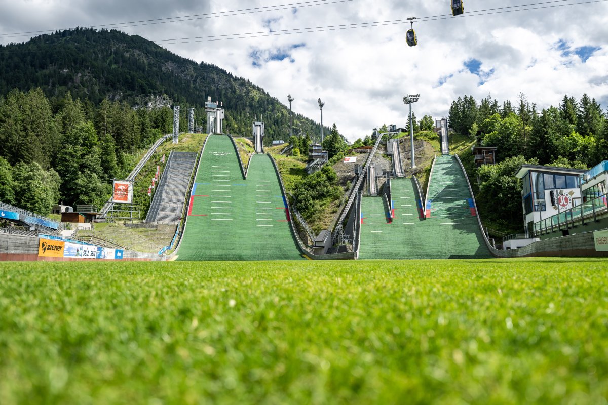 Skispringen live erleben? In der ORLEN Arena fast das ganze Jahr möglich, und das nicht nur bei Veranstaltungen. Zahlreiche nationale und internationale Teams sowie Nachwuchssportler aus Oberstdorf und der Region trainieren regelmäßig auf den fünf Schanzen – im Sommer wie im Winter.