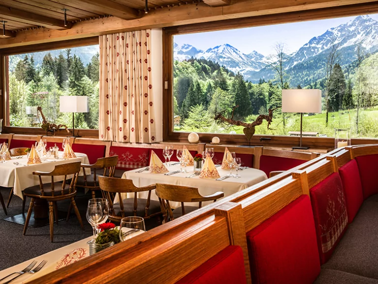 Für Abwechslung sorgt eine umfangreiche Speisekarte. Am Abend erwarten Gäste zudem besondere Gaumenfreuden wie Allgäuer Kässpätzle, Bauern- und Schmankerl-Buffets, Vorspeisenbuffets oder knuspriger Gänsebraten. Wildspezialitäten aus dem Jagdrevier Oberstdorf-Land runden das kulinarische Angebot ab.
